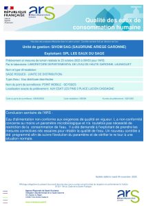 Accueil » Vie municipale » Publications règlementaires » Publications hors mairie » Résultats d’analyses du controle sanitaire – 31 23 octobre 2025
