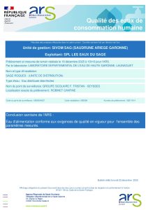 Accueil » Vie municipale » Publications règlementaires » Publications hors mairie » Résultats d’analyses du controle sanitaire – 31 le 16 décembre 2025